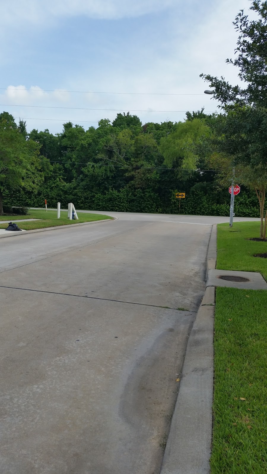 #89 thru #93. On 2 photos you see the tree line of the park from the neighborhood entry street and the parallel road to the park tree line. Three of the photos show trash bags and containers out for trash pickup.